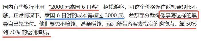 而像李海这样的导游的办法就是,通过“2000块泰国6日游”的名头吸引游客,但这种做法明显就是亏的。